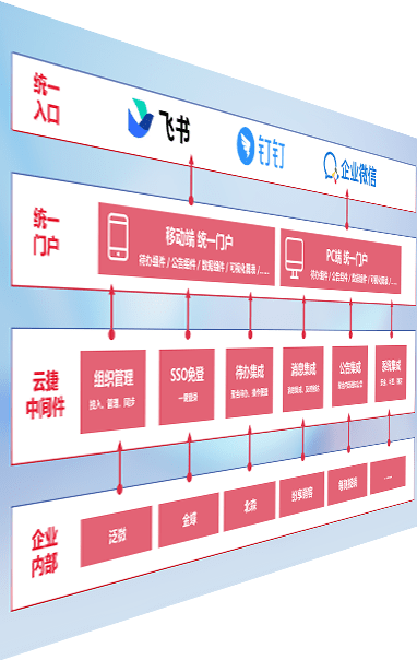 对协作平台提供支持服务,,,支持企业应用与协作平台对接,,,,包含组织同步、、消息集成、、待办集成等。。。。支持目前主流的协作平台:钉钉、、、企微和飞书。。。